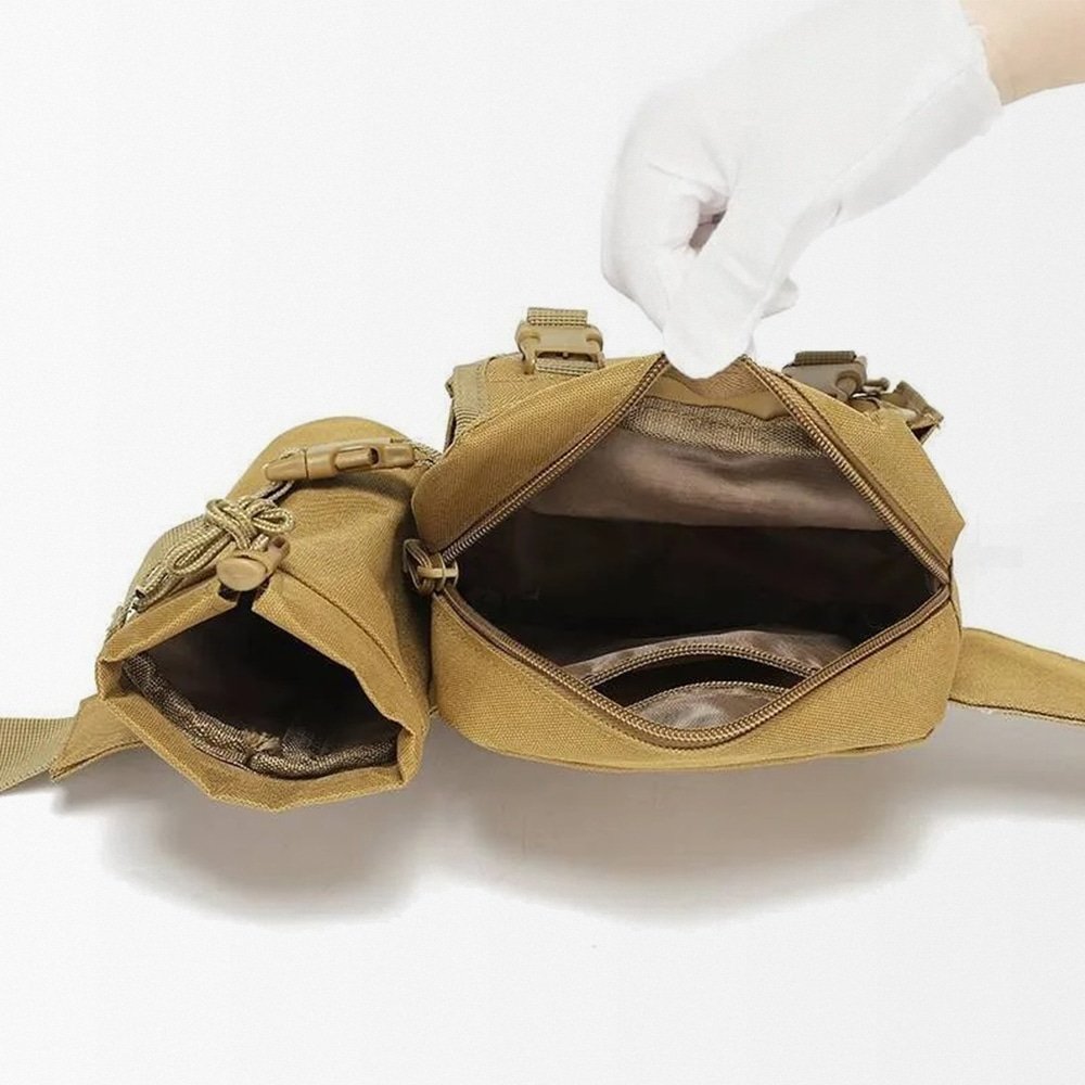 Mantente siempre preparado y organizado con esta riñonera táctica, diseñada para amantes de la aventura y profesionales tácticos. Cuenta con una correa de nylon desmontable y ajustable que ofrece múltiples formas de llevarla. Su construcción resistente y respaldo de malla transpirable garantizan comodidad en ciclismo, senderismo o caza. Con amplio espacio para tus esenciales y un portabotellas seguro, es tu compañera ideal en cualquier terreno. Disponible en Negro, Verde Ejército, Caqui y ACU.