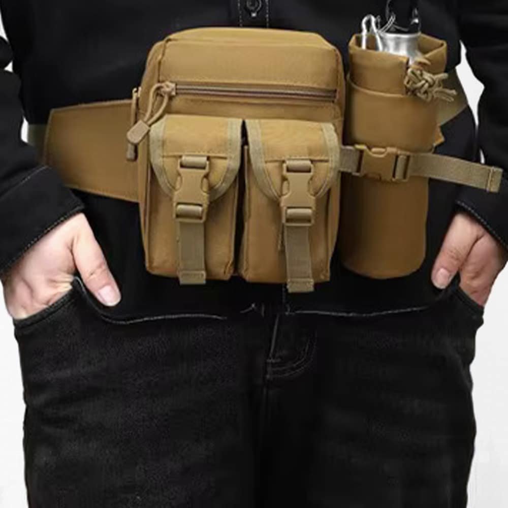Almacenamiento eficiente con riñonera táctica y portabotellas