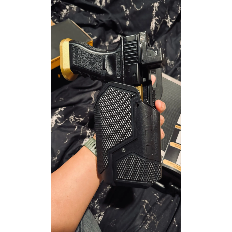 Pensado para profesionales tácticos, este sistema de funda QLS para mano derecha ofrece máxima seguridad y acceso inmediato. Fabricado en nylon resistente, se adapta perfectamente a pistolas de airsoft y modelos reconocidos como Glock, Sig Sauer y Smith & Wesson. Ideal para llevar en cinturón táctico, garantiza que tu arma esté siempre lista para la acción. Nota: Compatible únicamente con la linterna Surefire X300A.