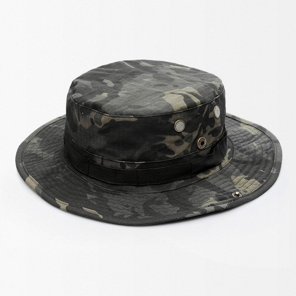 El sombrero boonie Multicam negro combina estilo con funcionalidad táctica. Su ala ancha ofrece protección y mejora tu perfil bajo. Equípate con este boonie elegante y eficaz para misiones encubiertas.