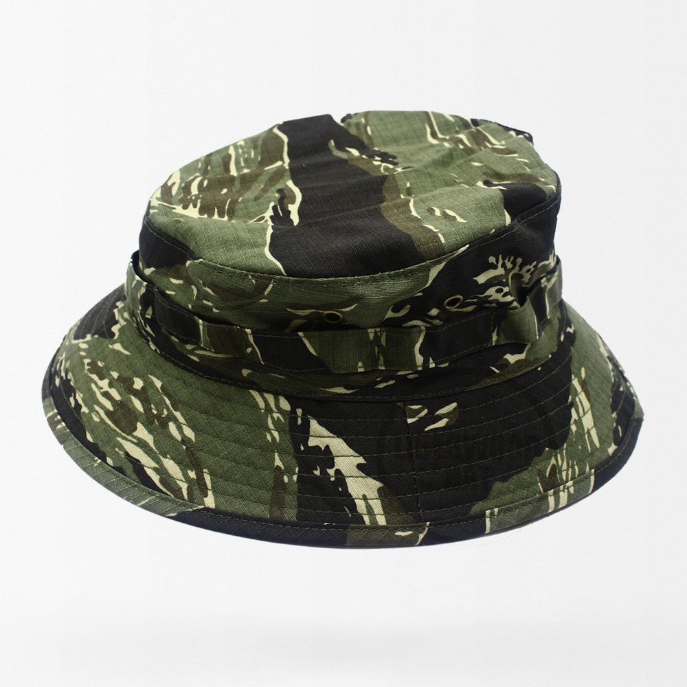 El Sombrero Boonie Tiger Stripe M45 destaca por su patrón de camuflaje icónico, ideal para el campo de batalla. Su ala ancha te protege del sol y la lluvia, garantizando un rendimiento óptimo en cualquier situación. Equípate con este sombrero táctico funcional y llamativo.