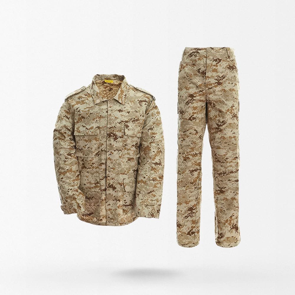 Perfecto para airsoft, caza y entrenamientos al aire libre, el Uniforme de Combate BDU Desierto Digital está diseñado para primavera, verano y otoño. Fabricado con una resistente mezcla de poliéster y algodón, asegura confort y durabilidad en diversos terrenos. Disponible en tallas XS a 2XL.