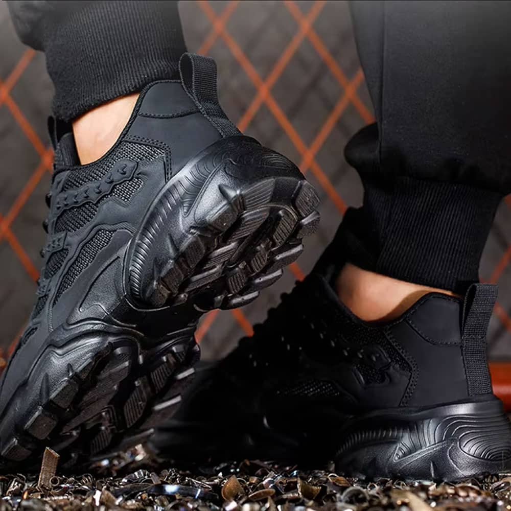 Enfrenta el campo de batalla o terrenos difíciles con total confianza gracias a nuestros Zapatos de Seguridad Tácticos Negros. Diseñados para ofrecer durabilidad y confort, son el aliado perfecto contra condiciones extremas. Su diseño estilizado y construcción robusta te mantienen ágil y protegido, ya sea en servicio o en tus aventuras al aire libre.