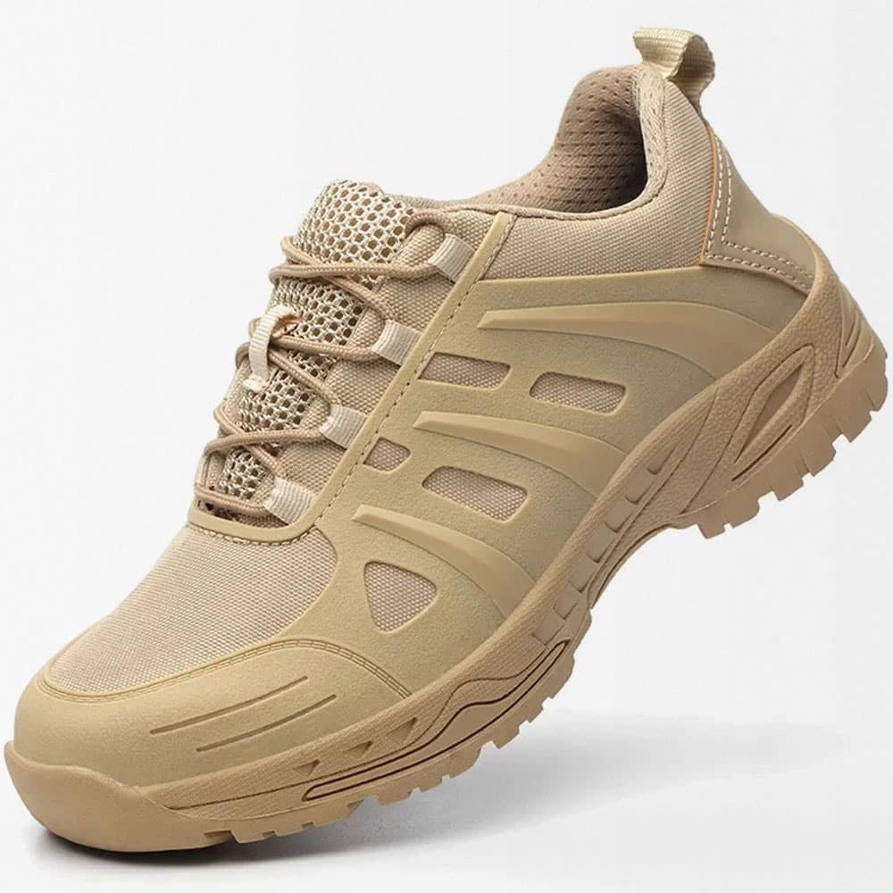 Enfrenta cualquier terreno o misión con confianza usando los zapatos tácticos para policía color arena desierto «QBH». Diseñados para primavera y otoño, estas botas hasta el tobillo ofrecen una seguridad inigualable gracias a su tecnología antiaplastamiento y antipunción. Su diseño transpirable garantiza comodidad durante todo el día, mientras que la suela de goma proporciona un agarre superior en cualquier superficie.